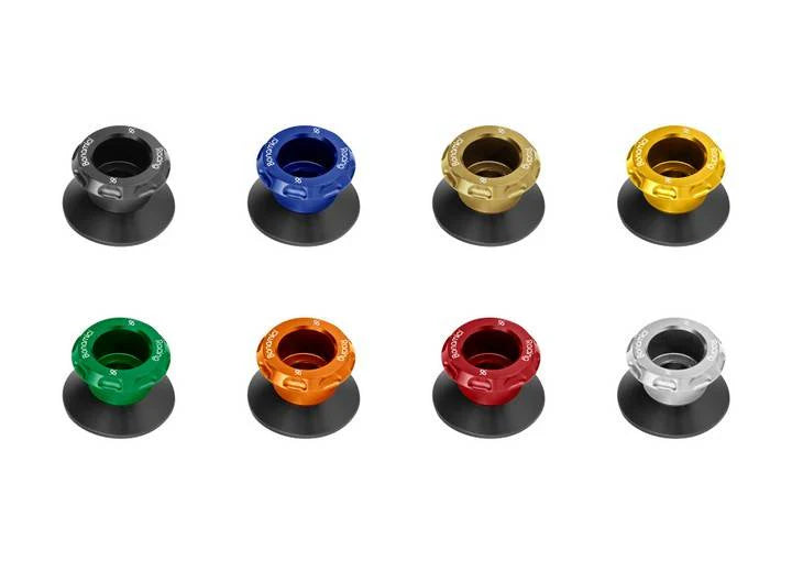 Machined from a solid block with CNC technology, the Bonamici Racing paddock stand spools are then anodized in various colors to accentuate the look of your motorcycle while providing a strong lift point for standard fork-style paddock stands.