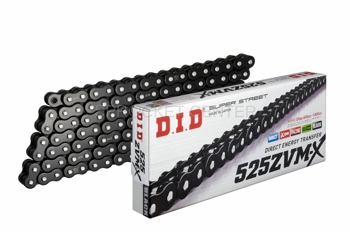 DID chain newest 525 ZVM-X2 chain is the ultimate street chain and is rated to 1300cc. Meets the demands of our current high-power, large displacement street bikes. This is one of the strongest 525 chains on the market.