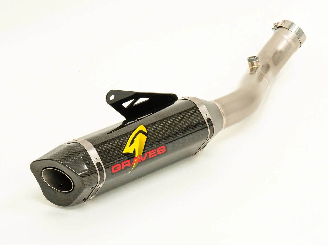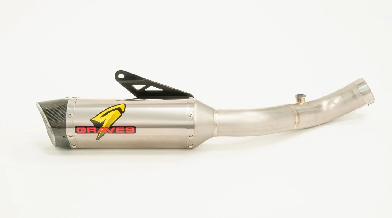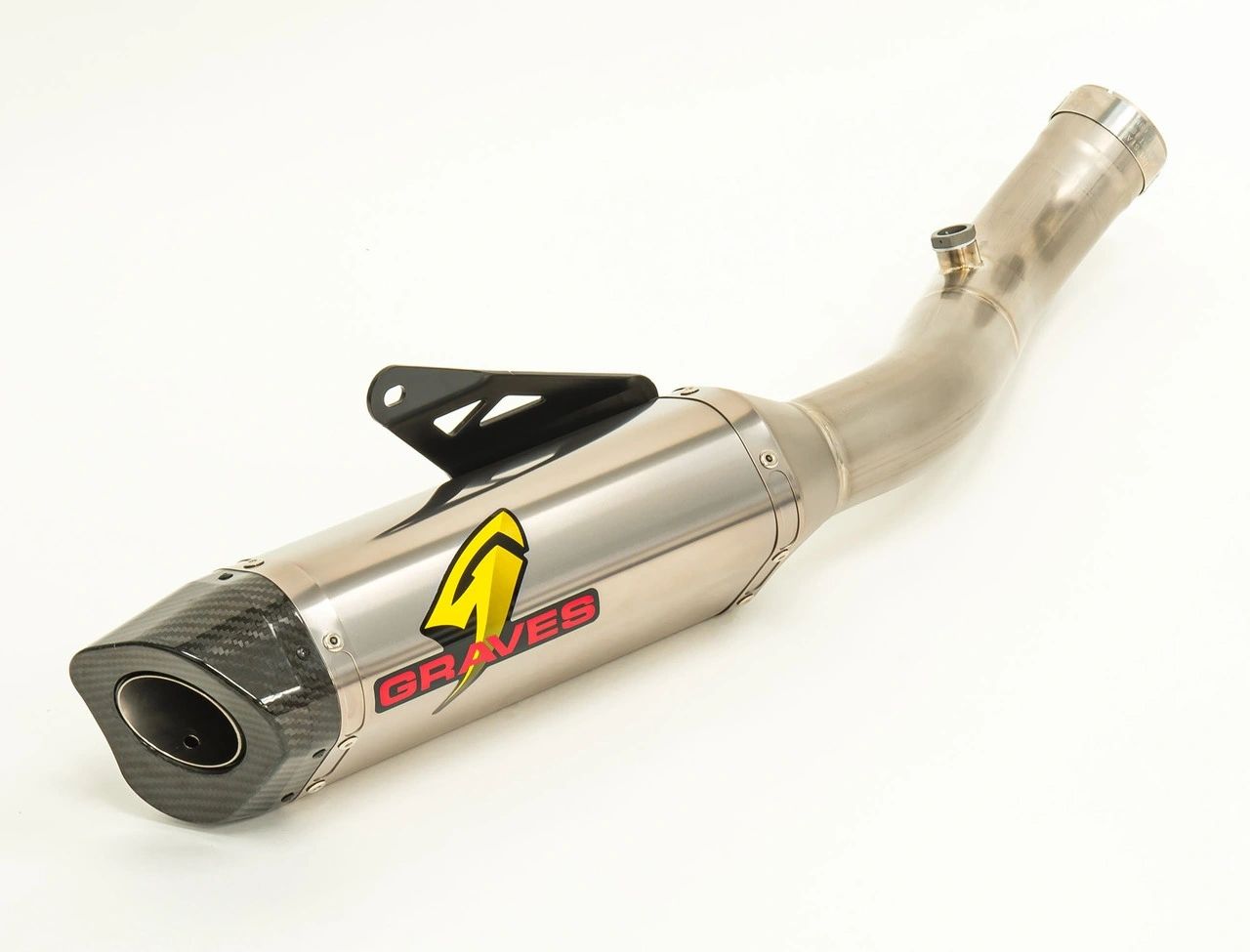 Graves Exhaust systems are designed for the elite rider seeking top of the line performance, fit, finish and value. This exhaust system was developed using the same technology that has powered the Graves Racing Team to 23 Professional AMA National Championships including 8 Superbike Championship titles!