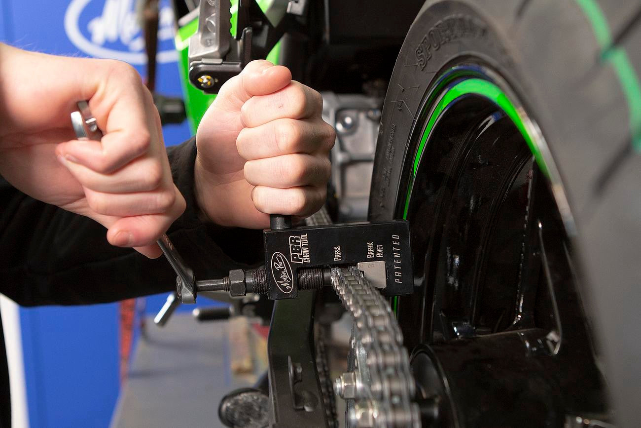- Innovative design will Press, Break & Rivet 520, 525, & 530 chains with one convenient tool