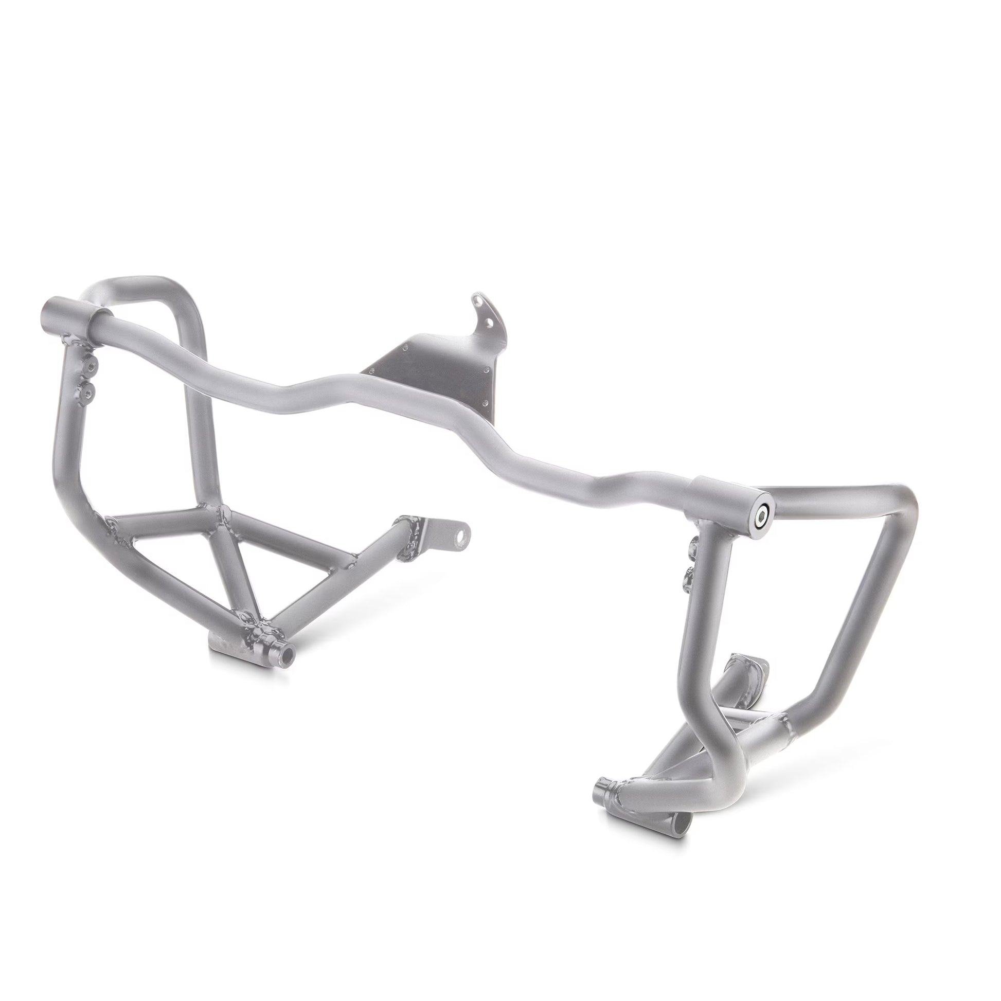 Tubular steel bars designed for protecting the engine against accidental drops or damage resulting from using the bike on rough terrain. A combination of style and functionality, they are integrated into the lines of the bike, emphasizing the adventure spirit of the bike.