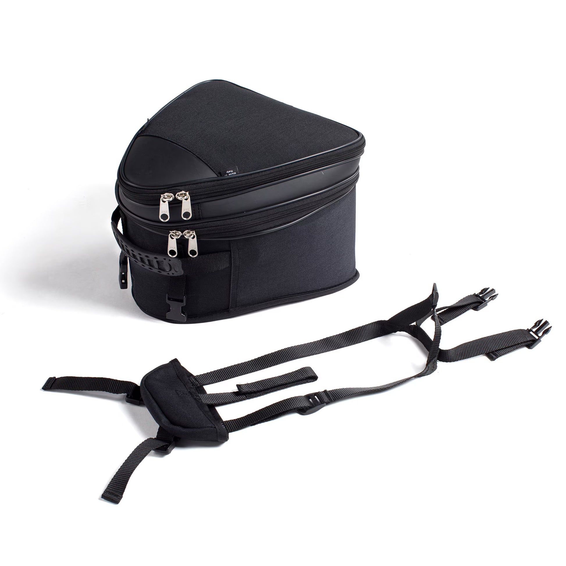 Practical 6 L tail bag that can be easily installed on the passenger seat. It features a shoulder strap for easy transport and a convenient external pocket.