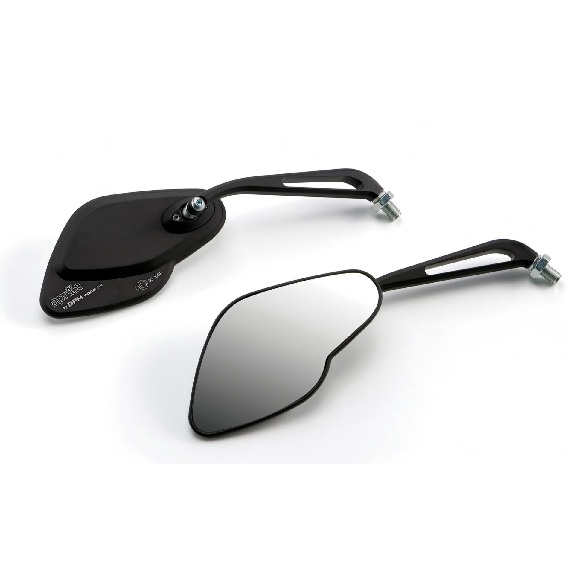 Machined from aluminium billet. Friction screws for precision adjustment. Convex glass for maximum visibility. Designed in collaboration with the Aprilia Style Centre.