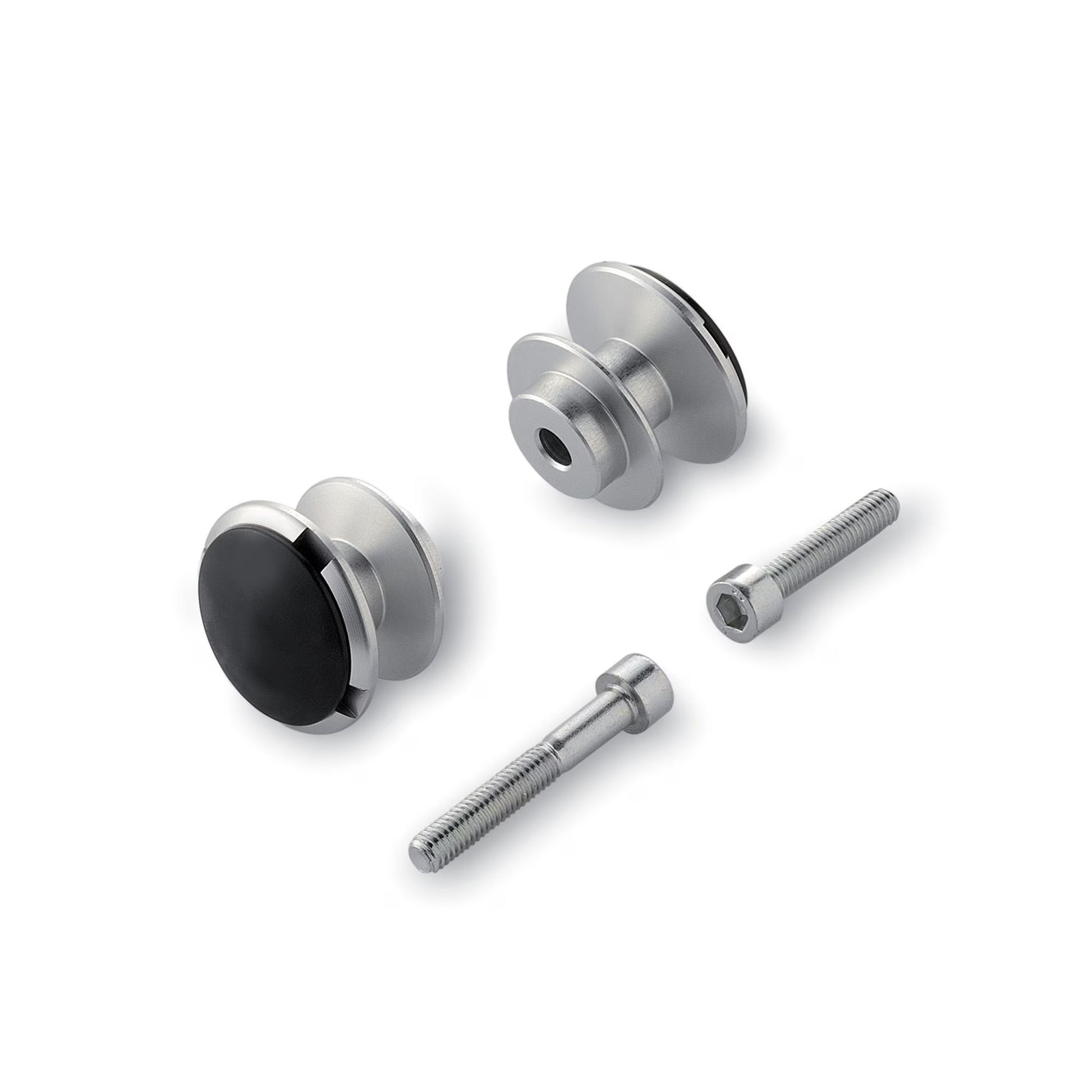 Rear Stand Bobbins made of CNC machined aluminum with protective nylon crash pad. Design with concealed fastener screw.