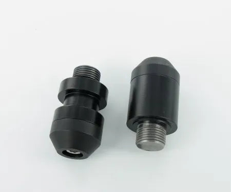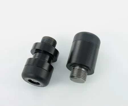 These bar ends are designed specifically for the RSV4 that thread into the bars, however the thread is the same as that used in bars going back to 2000. They may also be installed in earlier RSVs and Tuonos if the OEM weights are removed. This 2-piece design consists of bodies CNC machined from billet steel and replaceable polymer buttons that act as the sliding surface. An 8mm hex recess is located at the end of the body under the button so that that a hex key socket can be used to torque these to factory spec. The button then screws onto the body. Once mounted these have the same appearance as our other bar ends. This combo bar end kit includes one bar end and one mirror mount. The mirror mount has a feature that accepts any of CRG’s bar end mirrors. The buttons can be ordered separately as spares should they become damaged in a tip-over. This kit is offered in black powder coated finish only, but with a choice of button style. Please select button style when ordering.