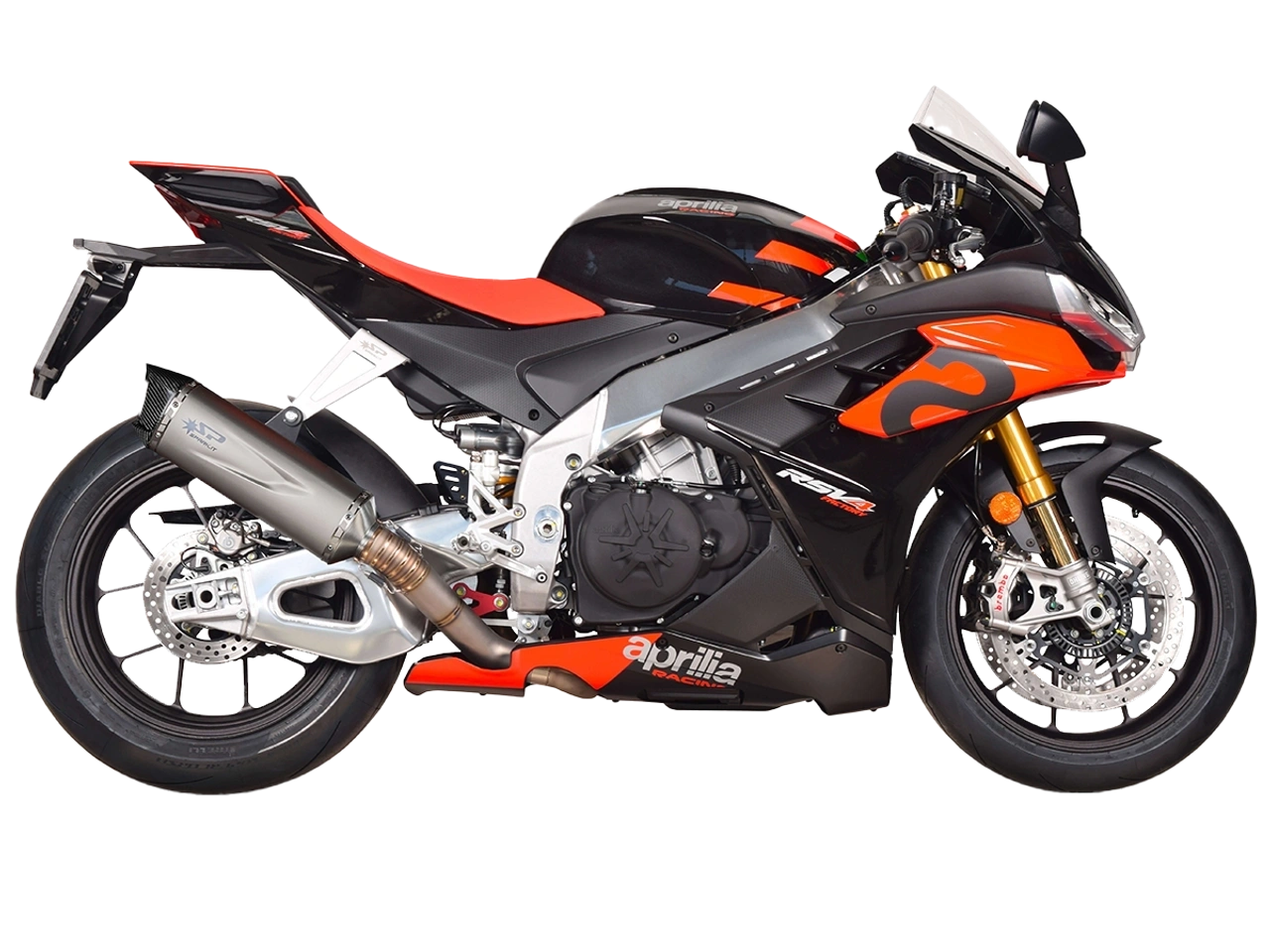Spark Exhaust Technology Aprilia RSV4 "Force EVo" Titanium Exhaust with Catalyst Eliminating Titanium Collector, Titanium Headers and Carbon ending on silencer.